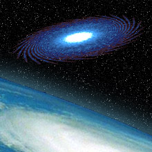 ついでに、二つの星座の間に横たわる? 天の川は、天の川銀河、「ミルキーウエイ」とも呼ばれていますよね。星のたくさん集まった「天の川銀河」は直径10万光年、中心部の厚み1.5万光年で、中心が膨らんだ凸レンズのような形をしています。