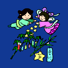 天の川をはさんできらめく牽牛星(彦星)・織女星(織り姫)の物語。いまから2000年前にはすでに中国で成立していた伝説だといわれていますが、機織りに励んだ天上の織女にちなんで、星に技芸の上達を祈る宮中行事が生まれ、日本へは奈良時代に伝わり宮中の行事としてとりおこなわれるようになったようです。