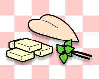 用意する材料はいたってシンプル。真空パックの「サトウの切り餅(我が家ではこれが定番)」2パック、「ミツバ」少々、「鳥のササミ」1/2枚、「いくら」数粒、「かまぼこ」2−3切れ「ニンベンのつゆの素(関西地方の方は入手しにくいと思いますからどこのメーカーでもお好きなものを選んでください)」少しです。一度にたくさん(スーパーで1パックづつ)購入してしまった方は、まとめて下ごしらえをして冷蔵庫で保存すれば、ほぼ1週間は所要時間約3分でお雑煮が楽しめますよ。調理に必要な道具は、湯沸し用のヤカン、ラーメンなべ、電子レンジ、平皿、お椀、お箸ですが、一人暮らしの方でも大抵はお持ちの道具ではないかと思います。