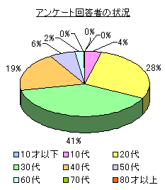 「デジタルカメラアンケート調査結果」 2001年3月20日から4月22日まで、皆様にご協力いただきましたアンケートの結果をまとめてみました。 さて、ご回答者の概要を簡単にご説明します。 男女の構成比は図1のとおり、男性63%、女性37%となりました。年代別では、図2のとおり、30代がもっとも多く41%、次いで20代が28%、40代が19%と続き、20代から40代の合計は88%とインターネット人口の構成比とほぼ似ている状況となりました。