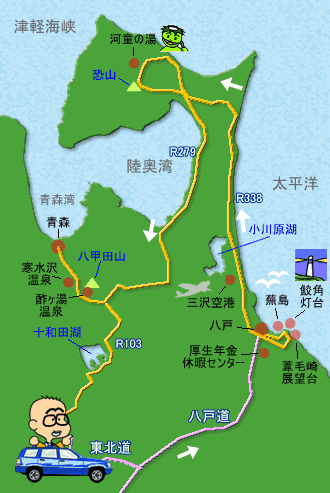 手元に地図があればご覧いただくと、とても無茶なコース。昨夜、お酒が入った勢いで「恐山に行って見よう」ということになった。