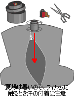 水を排出し、水滴防止液を注入します。30秒程度浸けておけばOKです。