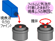 勢い良く水道から水を注入すると、タンクの中でフィルムが泳ぎ、思わぬ傷の基になりますから、フィルムが動かない程度の勢いでお願いします。